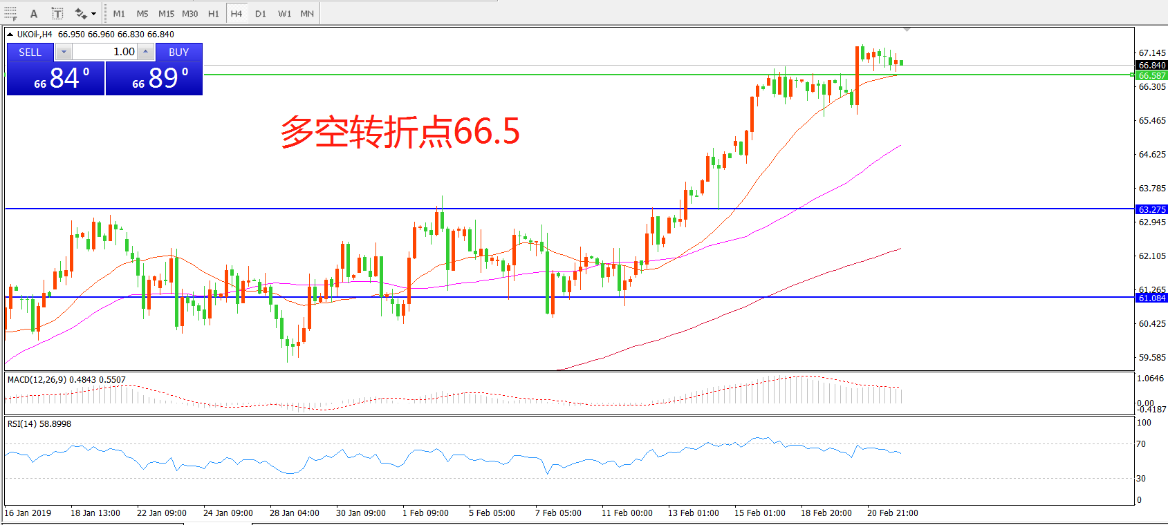 交易策略:在66.50之上看涨,目标67.00 70.00