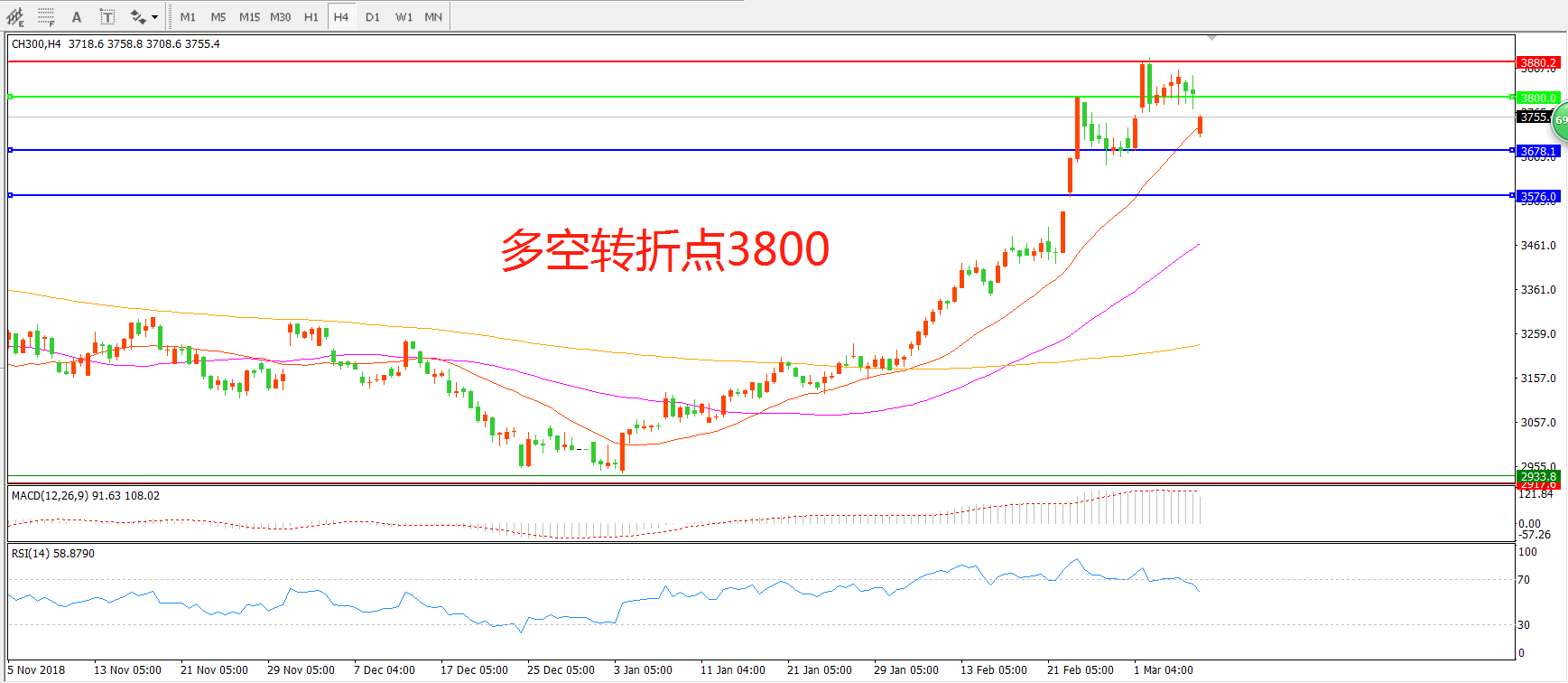 多空转折点:3800.00