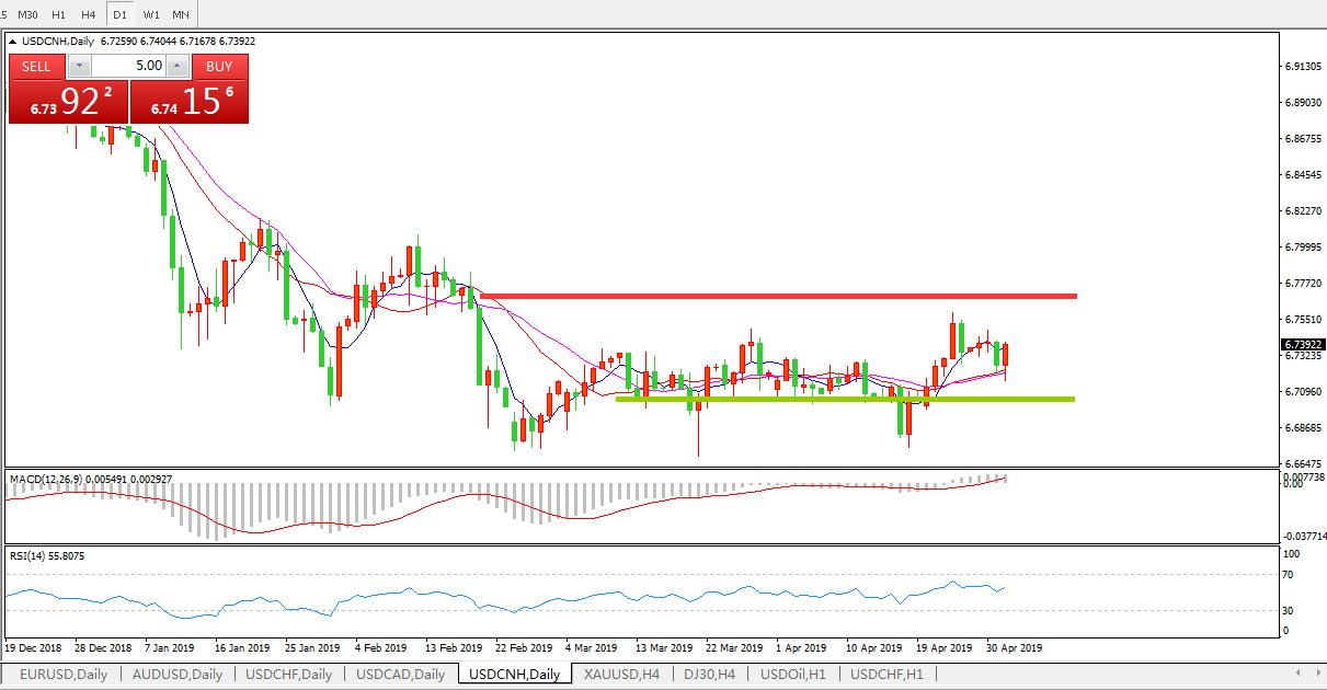 交易策略: 在6.6990之上,看涨,目标价位为6.7845,然后为6.8185。
