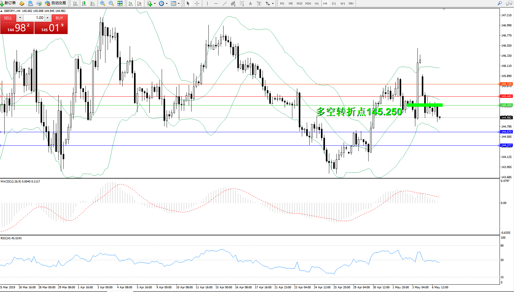 交易策略:145.250下方看跌,目标:144.670、144.377