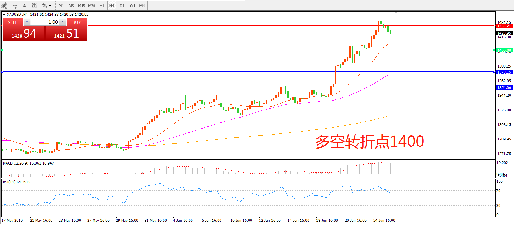 交易策略:在1400.00之上看涨,目标1430.00 1490.00