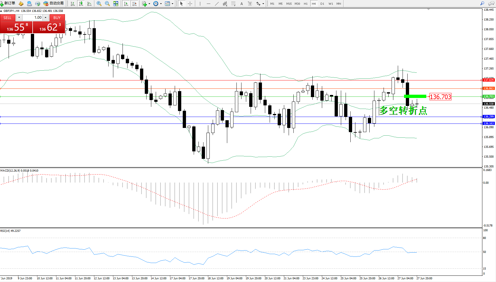 交易策略:136.703下方看跌,目标136.299136.163