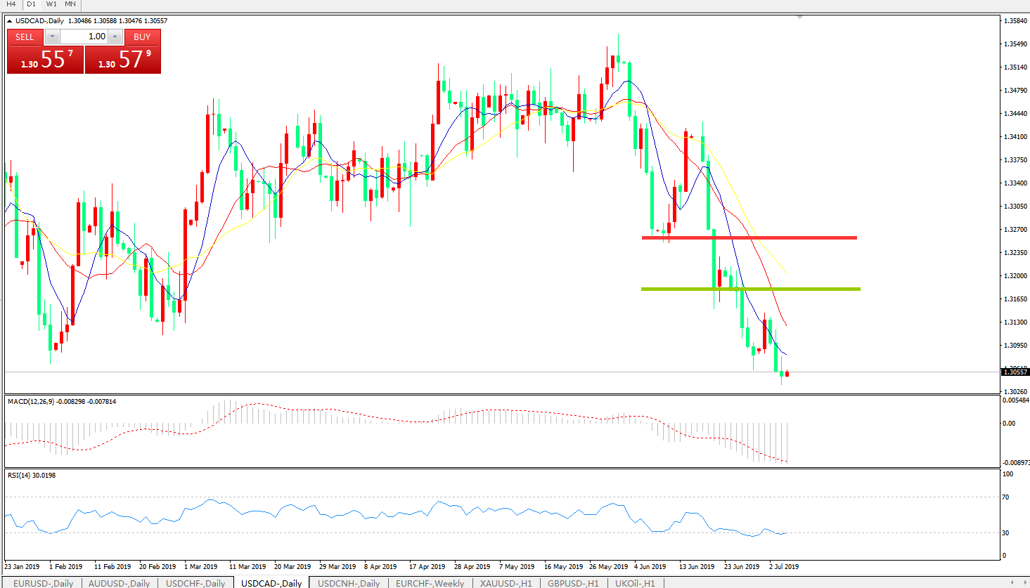 美元兑加元USDCAD    日线图: