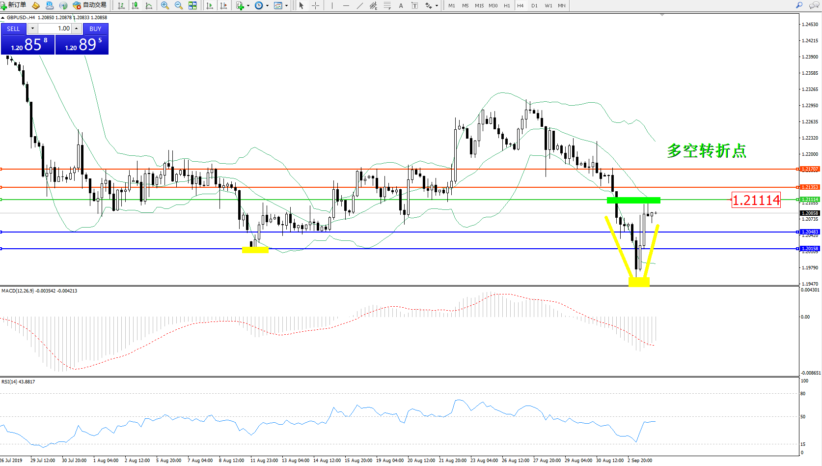 交易策略:1.21114下方看跌,目标1.204831.20158