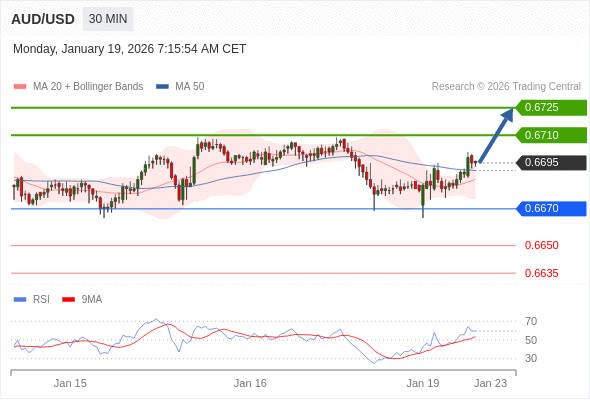 在 0.6670 之上,看涨,目标价位为 0.6710 ,然后为 0.6725 。