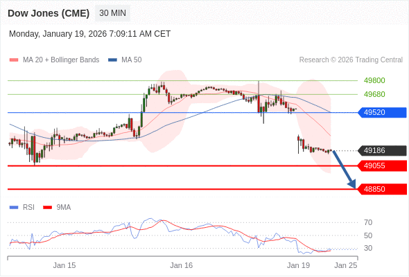 在 49520 之下,看跌,目标价位为 49055 ,然后为 48850 。