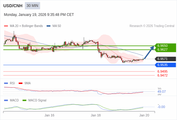 替代方案: 在6.9535以下,期待6.9495和6.9472。