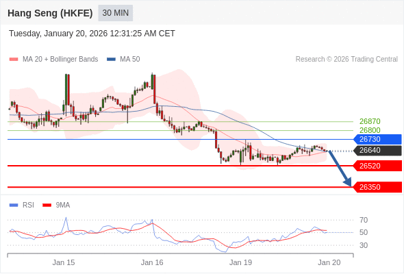 香港恒生指数期货 当日内: 短期关键阻力位在26730。