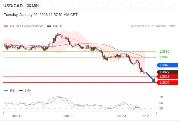 在 1.3845 之下,看跌,目标价位为 1.3815 ,然后为 1.3800 。