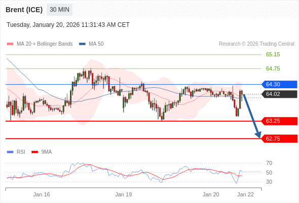 交易策略: 在 64.30 之下,看跌,目标价位为 63.25 ,然后为 62.75 。