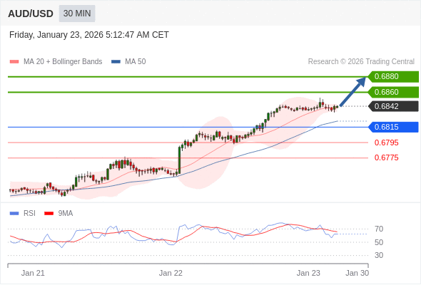 澳元/美元 当日内: 朝0.6860运行。