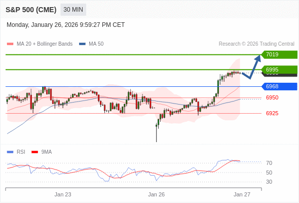 在 6968 之上,看涨,目标价位为 6995 ,然后为 7019 。