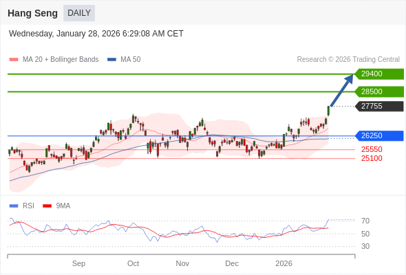 交易策略: 在 26250 之上,看涨,目标价位为 28500 ,然后为 29400 。