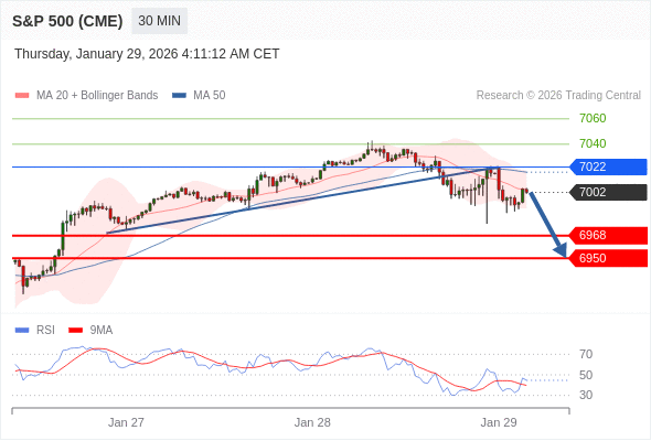 在 7022 之下,看跌,目标价位为 6968 ,然后为 6950 。