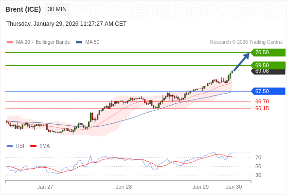在 67.50 之上,看涨,目标价位为 69.50 ,然后为 70.50 。