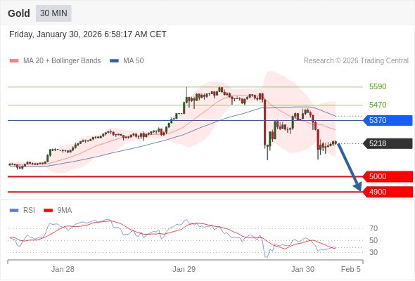 交易策略: 在 5370 之下,看跌,目标价位为 5000 ,然后为 4900 。