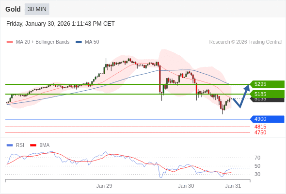 交易策略: 在 4900 之上,看涨,目标价位为 5185 ,然后为 5295 。