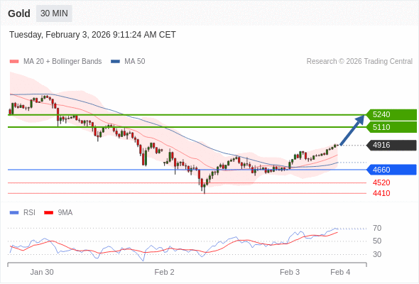 在 4660 之上,看涨,目标价位为 5110 ,然后为 5240 。
