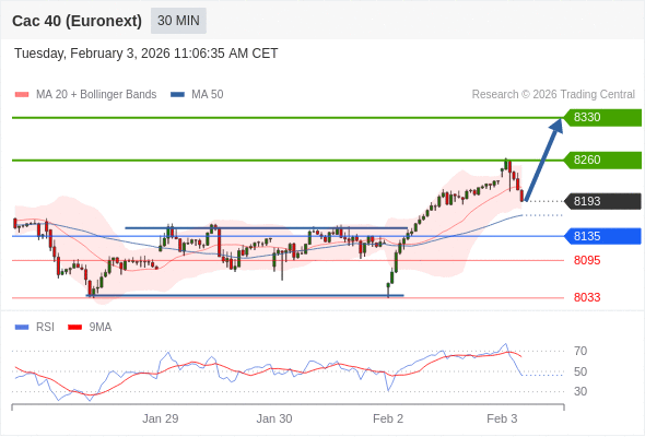 在 8135 之上,看涨,目标价位为 8260 ,然后为 8330 。