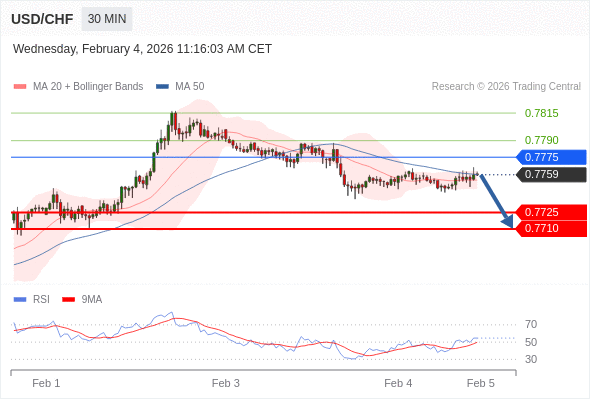 在 0.7775 之下,看跌,目标价位为 0.7725 ,然后为 0.7710 。