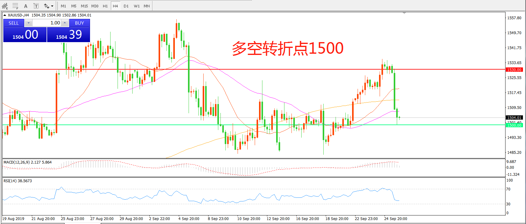 多空转折点:1500.00