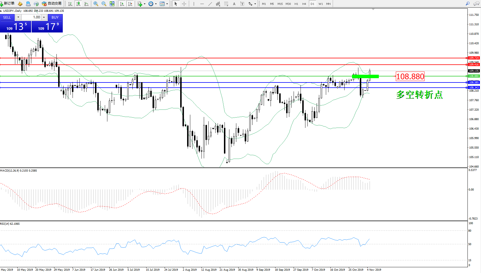 避险货币日元下滑,贸易情绪乐观提振了风险偏好,并促使投资者转向寻求较高收益货币。美元兑日元涨0.53%109.16,创925日以来最大涨幅;日元跑输大盘,受美债收益率攀升和薪酬结算日(这一天通常会引发进口商的美元需求)拖累。不断增长的贸易协议乐观情绪在本周继续推动美国10年期公债收益率上涨,基金多头受此鼓舞,力推美元兑日元升穿109的水平。