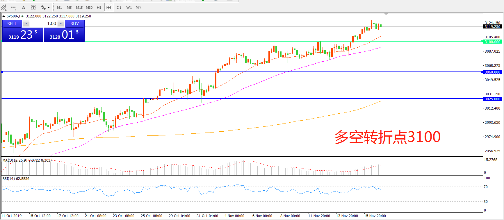 多空转折点:3100.00