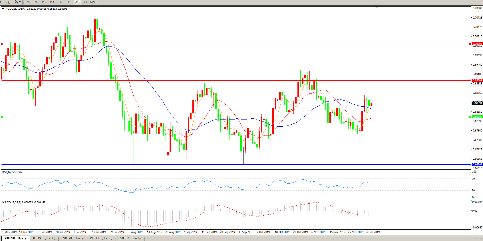 备选策略:0.6800上方看涨,目标0.6900、0.7000