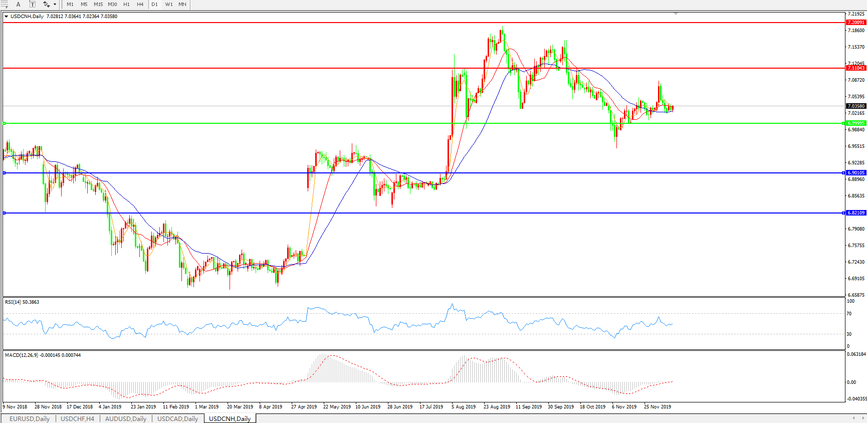 交易策略: 在7.0000之上,看涨,目标价位为7.1000,然后为7.2000。