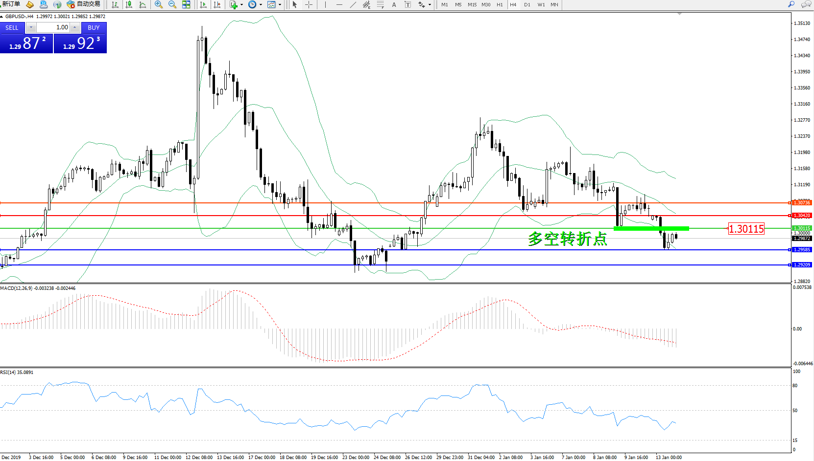 交易策略:1.30115下方看跌,目标1.29585、1.29209