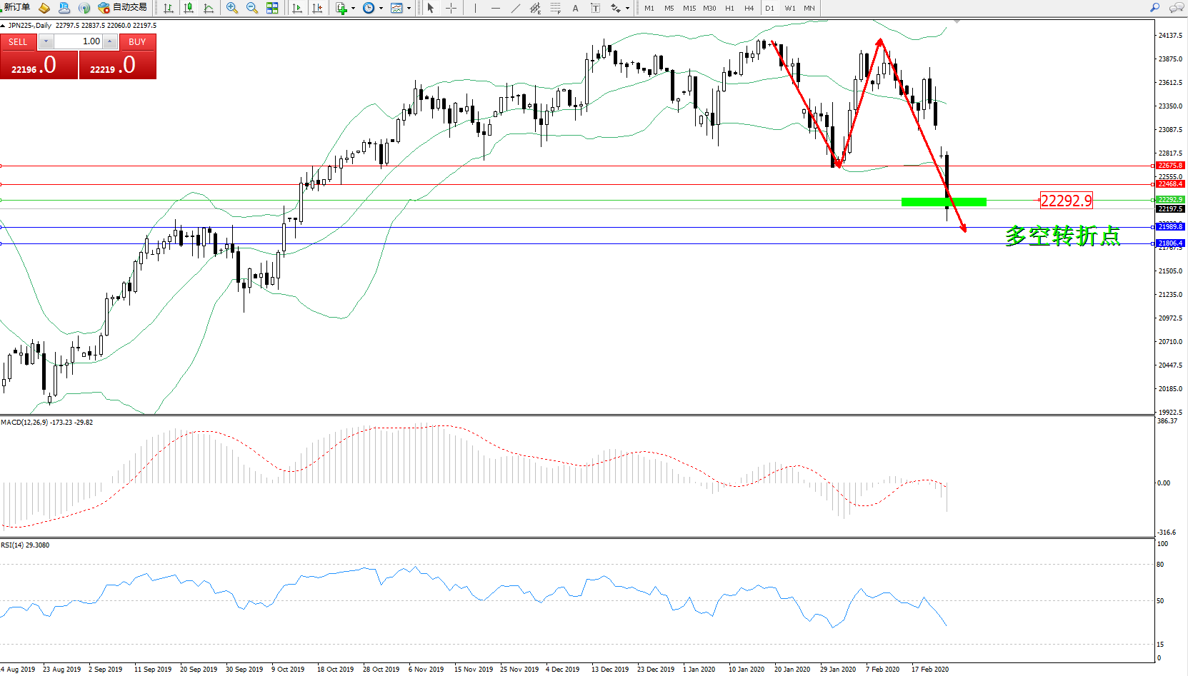 周一补休天皇诞辰日,休市一天。日经225指数221日(周五)收盘下跌91.65点,跌幅0.39%,报23387.50点。投资者更加担忧公共卫生安全问题在海外市场的蔓延。美国股市在本周开盘即大幅度下挫。中国以外的许多国家出现了大量新病例,加剧了传播的担忧,导致美国股指期货下跌。日本富士电视台等媒体于投资者更加担忧公共卫生安全问题在海外市场的蔓延。美国股市在本周开盘即大幅度下挫。中国以外的许多国家出现了大量新病例,加剧了传播的担忧,导致美国股指期货下跌。日本富士电视台等媒体于22日和23日,针对本国民众进行了一次民意调查。结果显示,安倍内阁的支持率为36.2%,不支持率为46.7%。不支持率时隔19个月,首次超过了支持率。