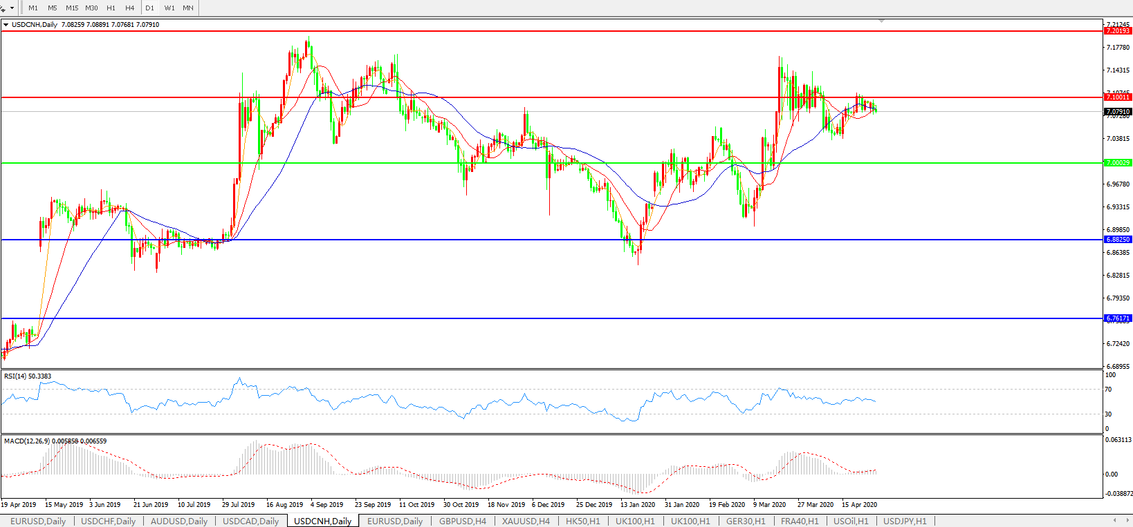 美元兑人民币USDCNH 日线图: