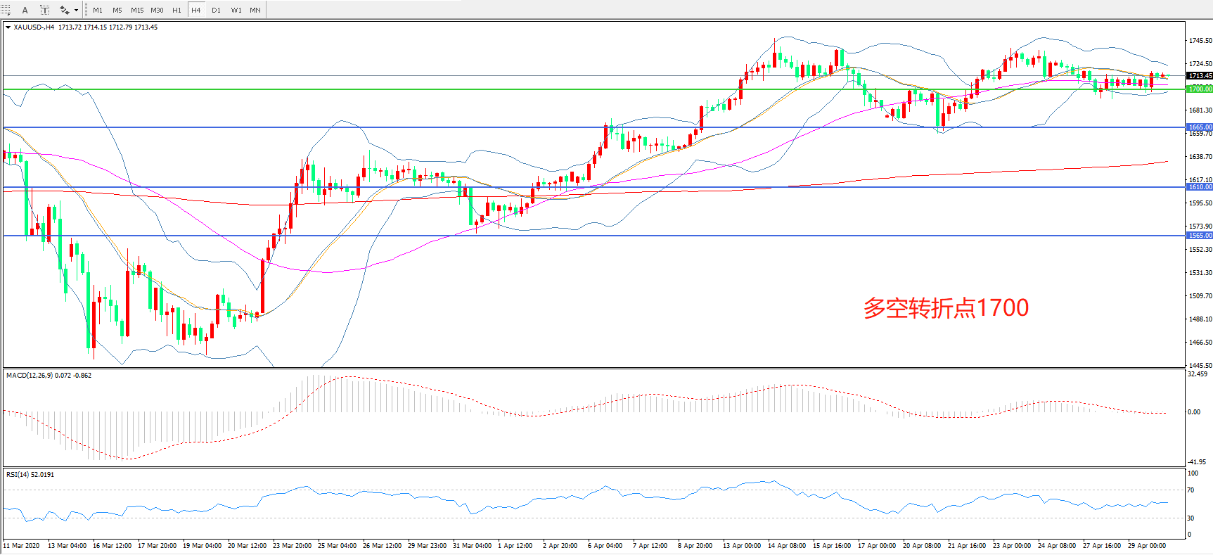 多空转折点:1700.00