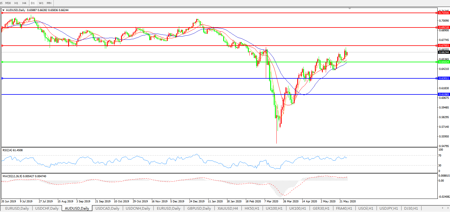 随着澳大利亚重启经济,投资者看好该国经济前景。尽管国际关系对抗意味趋浓,但尚未对全球贸易形势产生新的冲击;澳大利亚已经启动了分阶段重开经济计划,各州将根据当地实际情况,自行决定是否实施。但一些州已经恢复了不少经济活动。澳大利亚还将从7月份开始重新吸纳外国留学生,极大地改善了经济前景;4月份澳大利亚出口下降12%,主要因抗击疫情而推出的严格出行限制措施。金属类矿石、煤炭和石油因建筑和旅行活动受限而陷入出口低迷;然而中国越来越多的建筑活动重新恢复,旅行限制逐步减少,增强了投资者信心。中国是澳洲最大的出口目的地;澳洲联储此前还对实施负利率政策的可能性予以了否认,因此经济刺激手段主要来自于量化宽松。