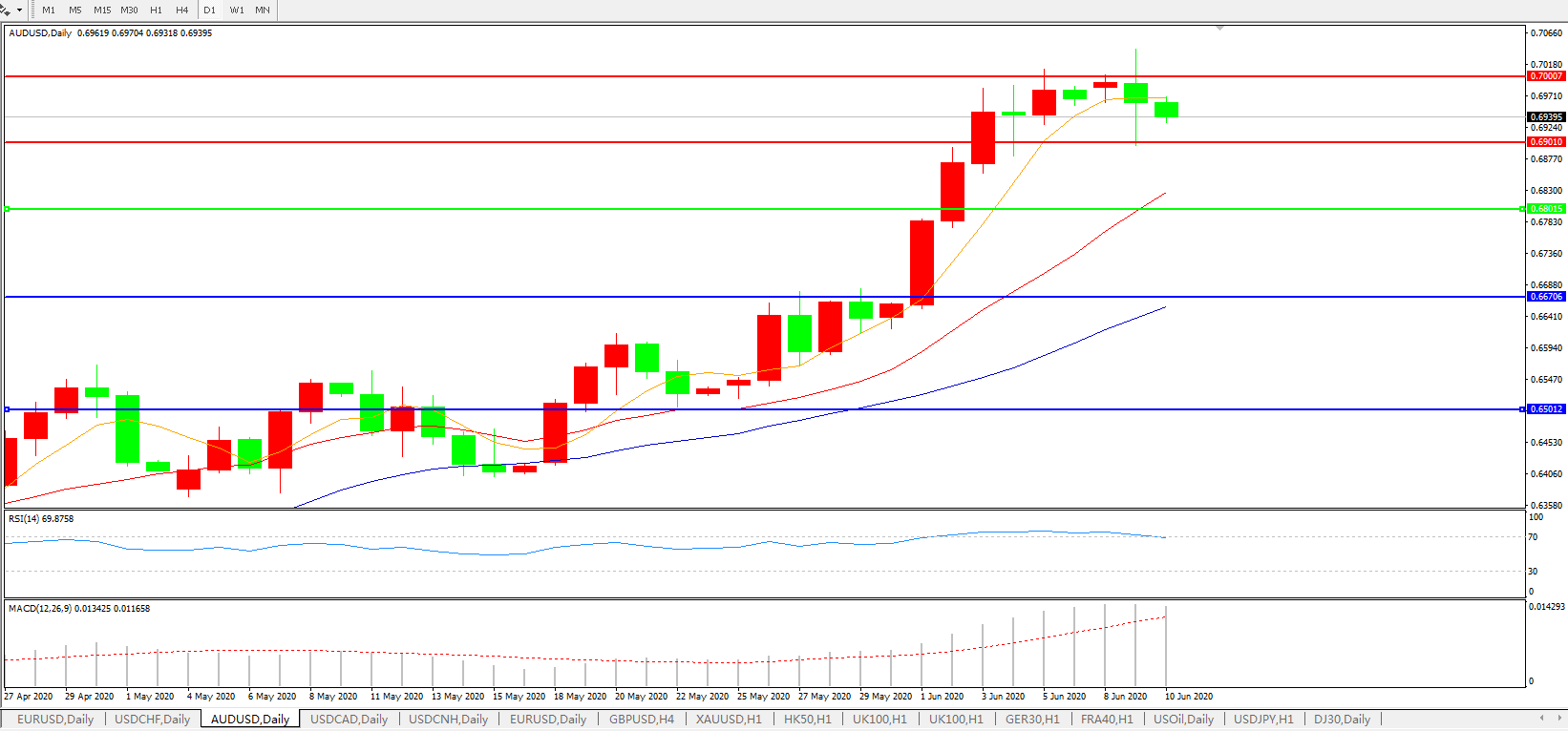 压制位:0.6900 0.7000