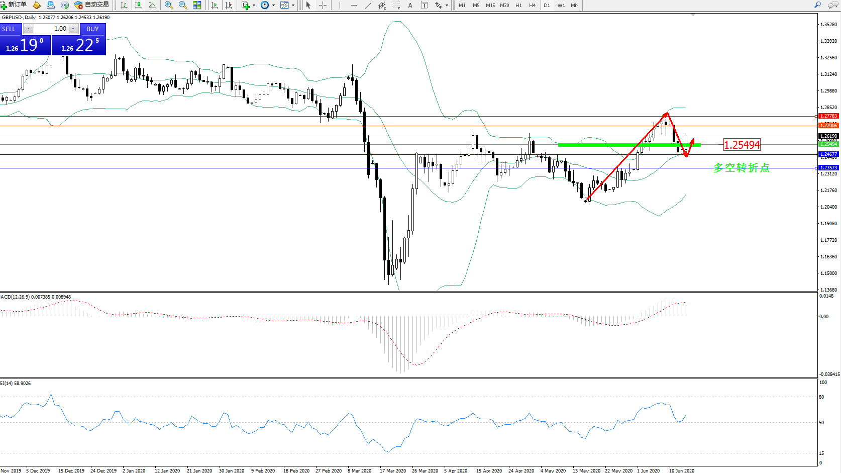 交易策略:1.25494上方看涨,目标1.27006、1.27783