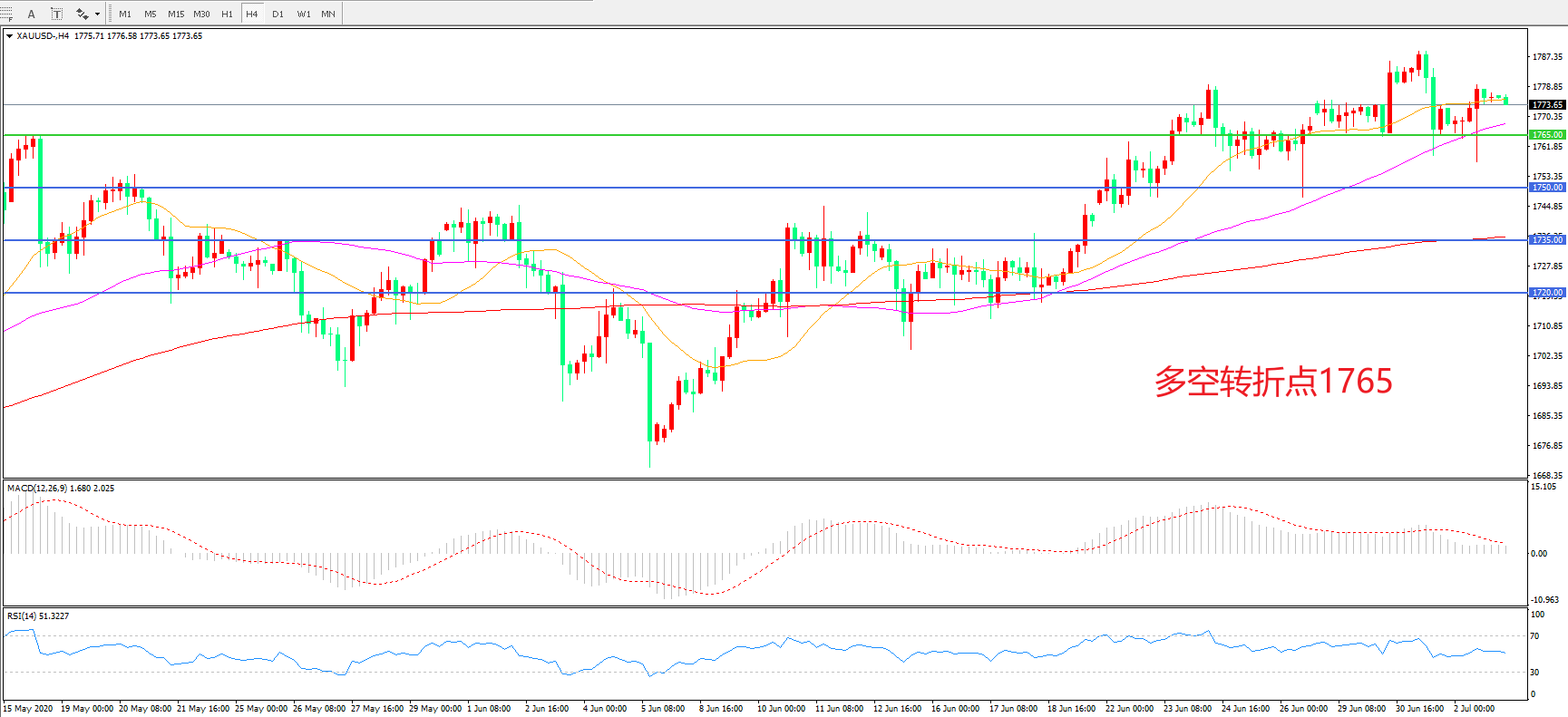 多空转折点:1765.00