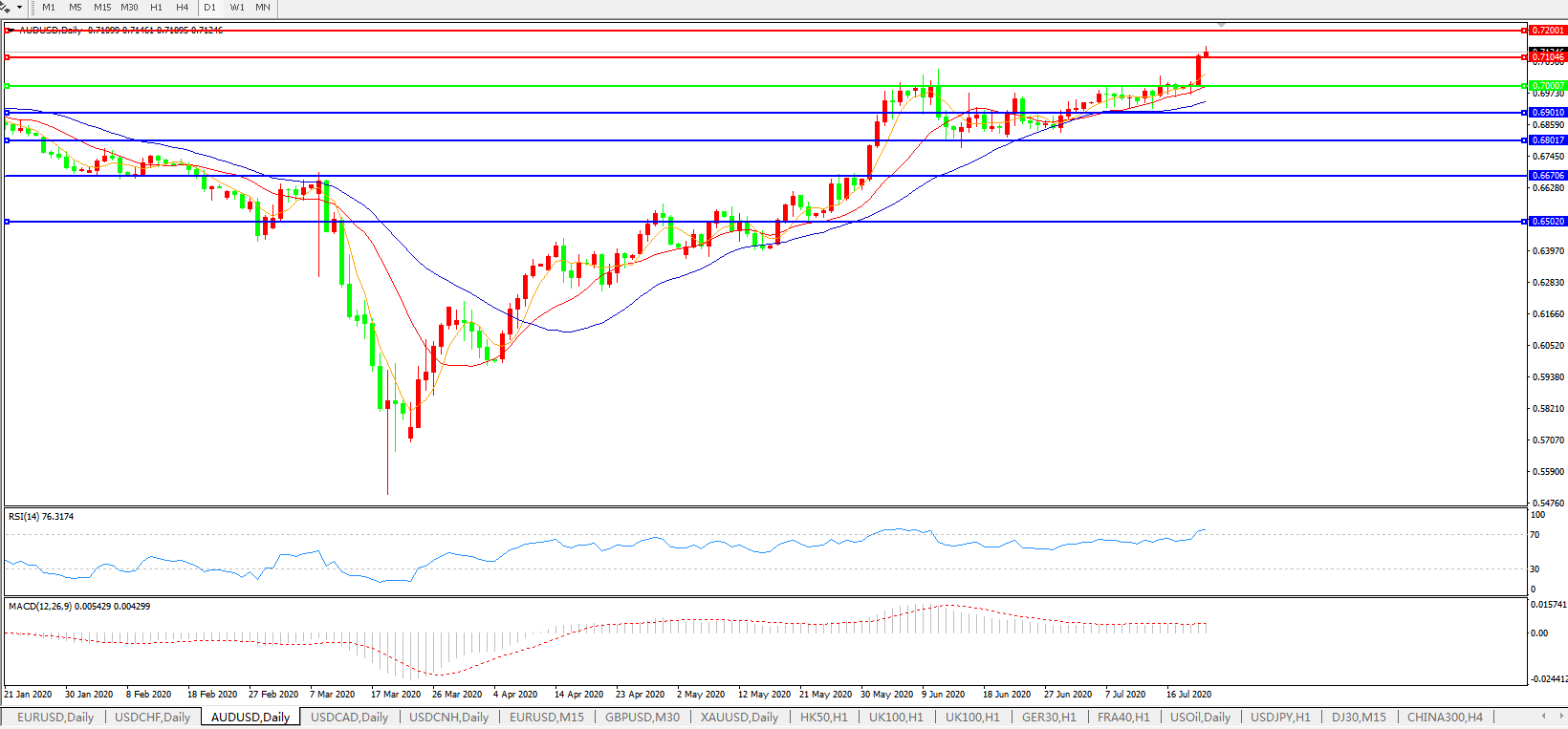 澳元兑美元AUDUSD    日线图: