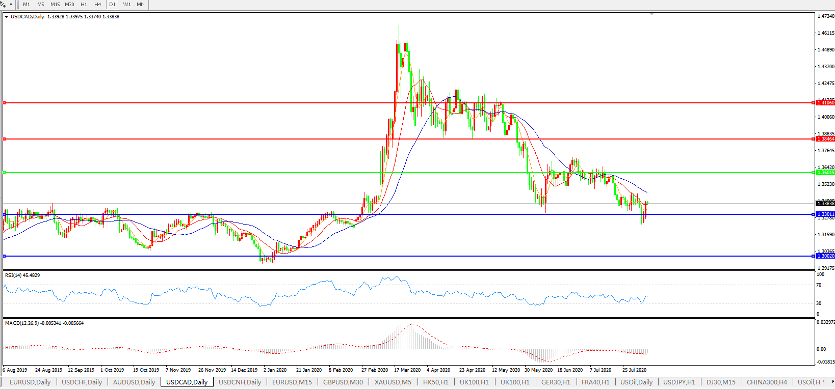 美元兑加元USDCAD    日线图: