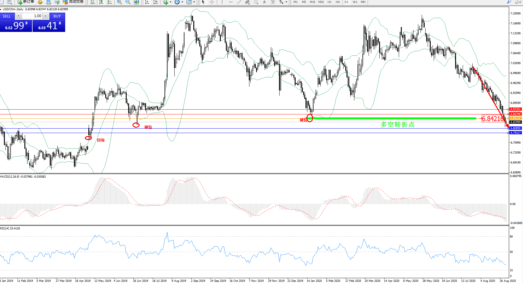 交易策略:6.84216下方看跌,目标6.80890、6.79327