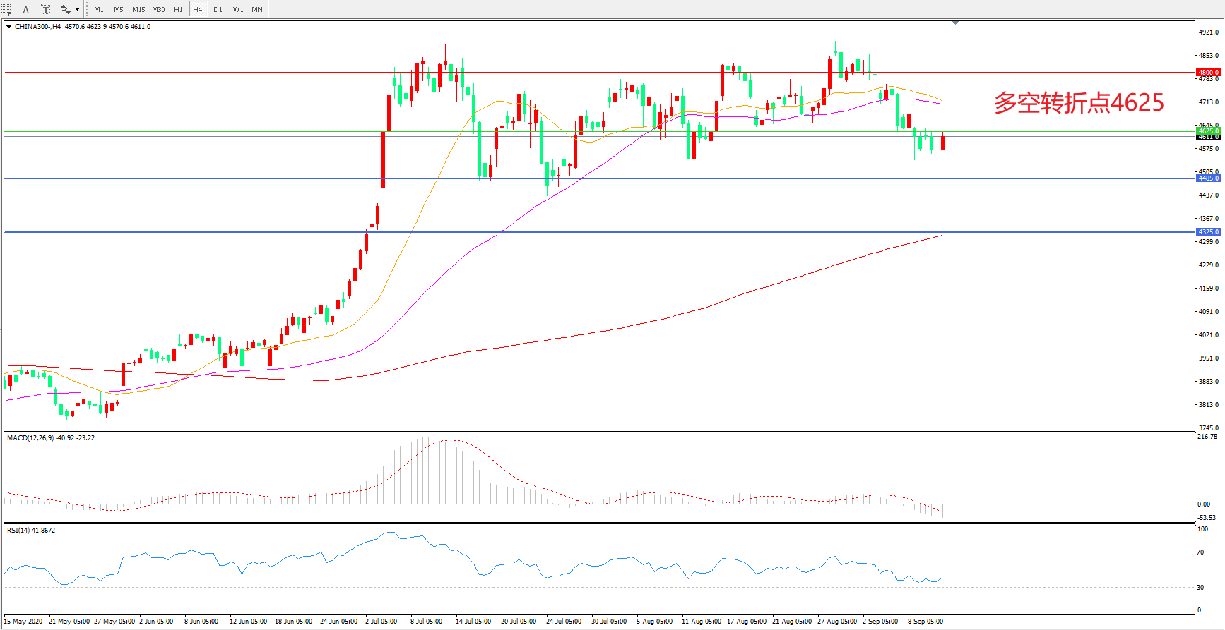 多空转折点:4625.00