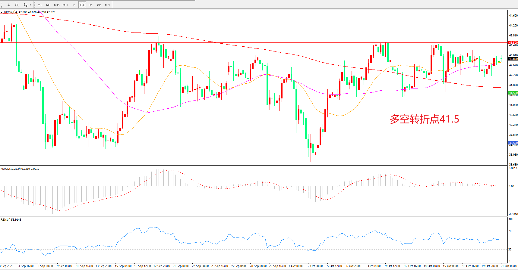 交易策略: 在41.50之上看涨,目标43.50 46.50