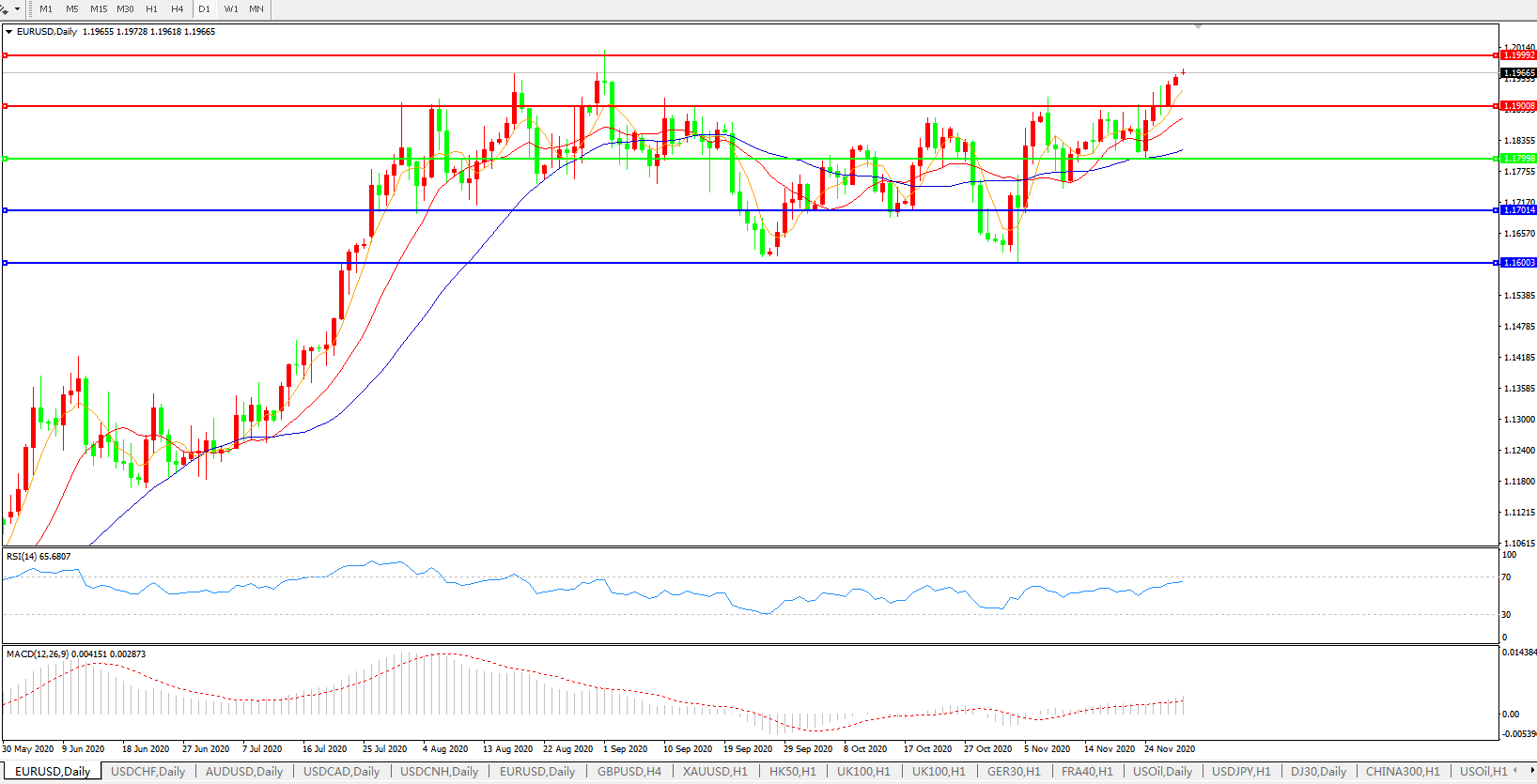欧元兑美元EURUSD   日线图: