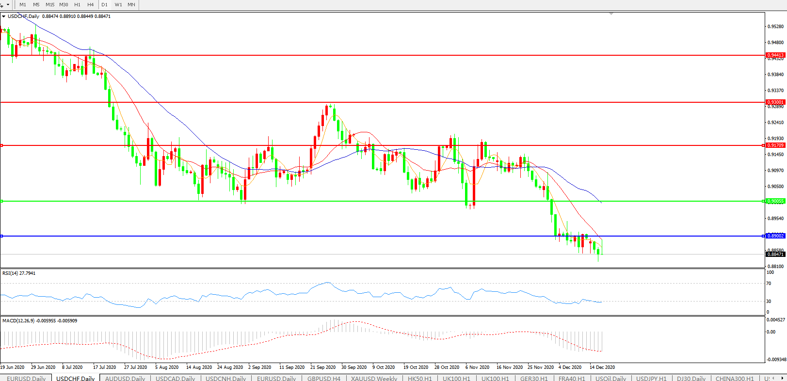 美元兑瑞郎USDCHF    日线图: