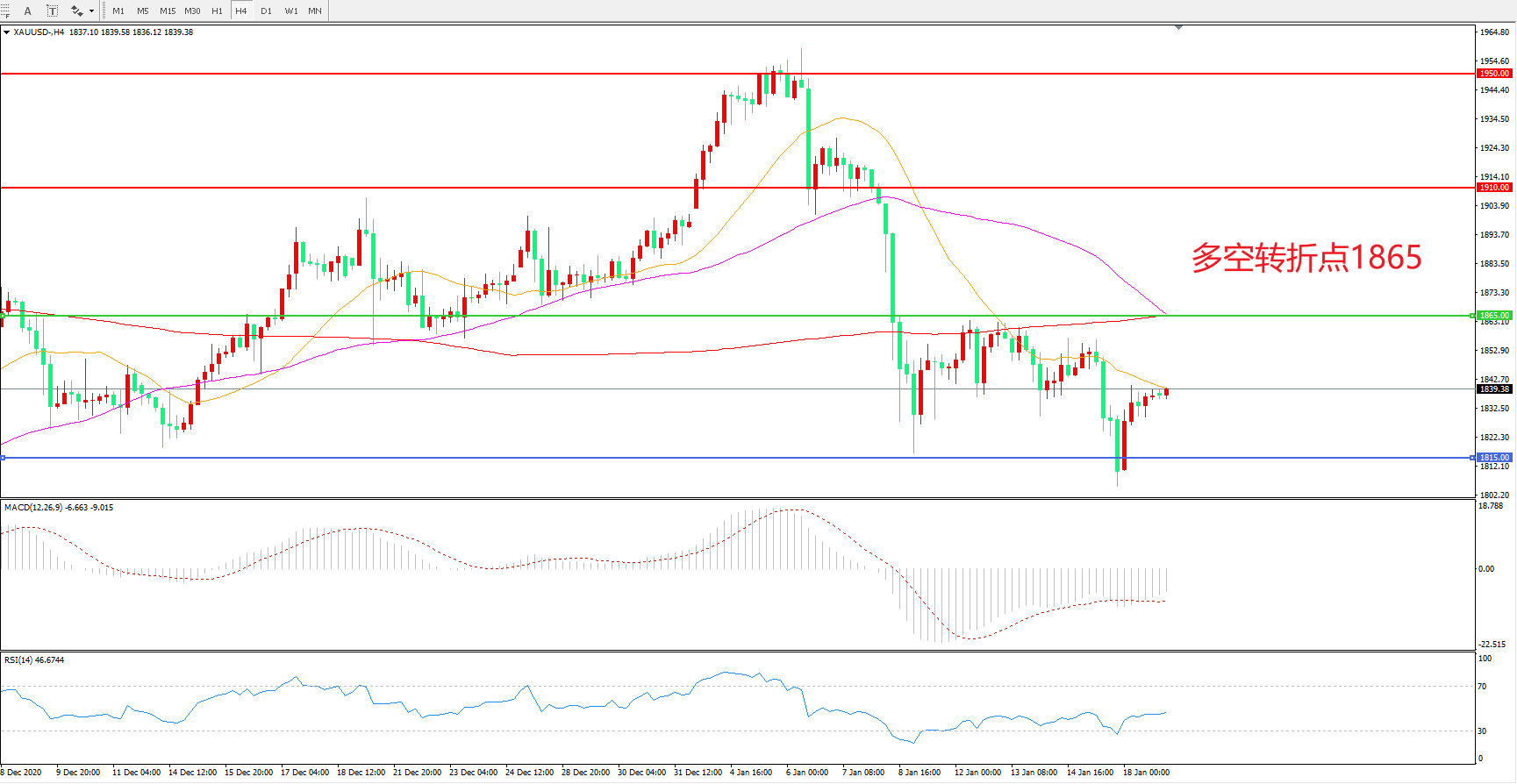 交易策略:在1865.00之下看跌,目标1815.00   1765.00