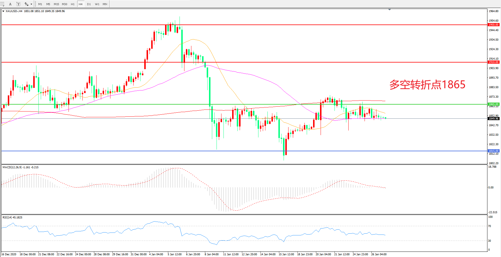 交易策略:在1865.00之下看跌,目标1815.00    1765.00