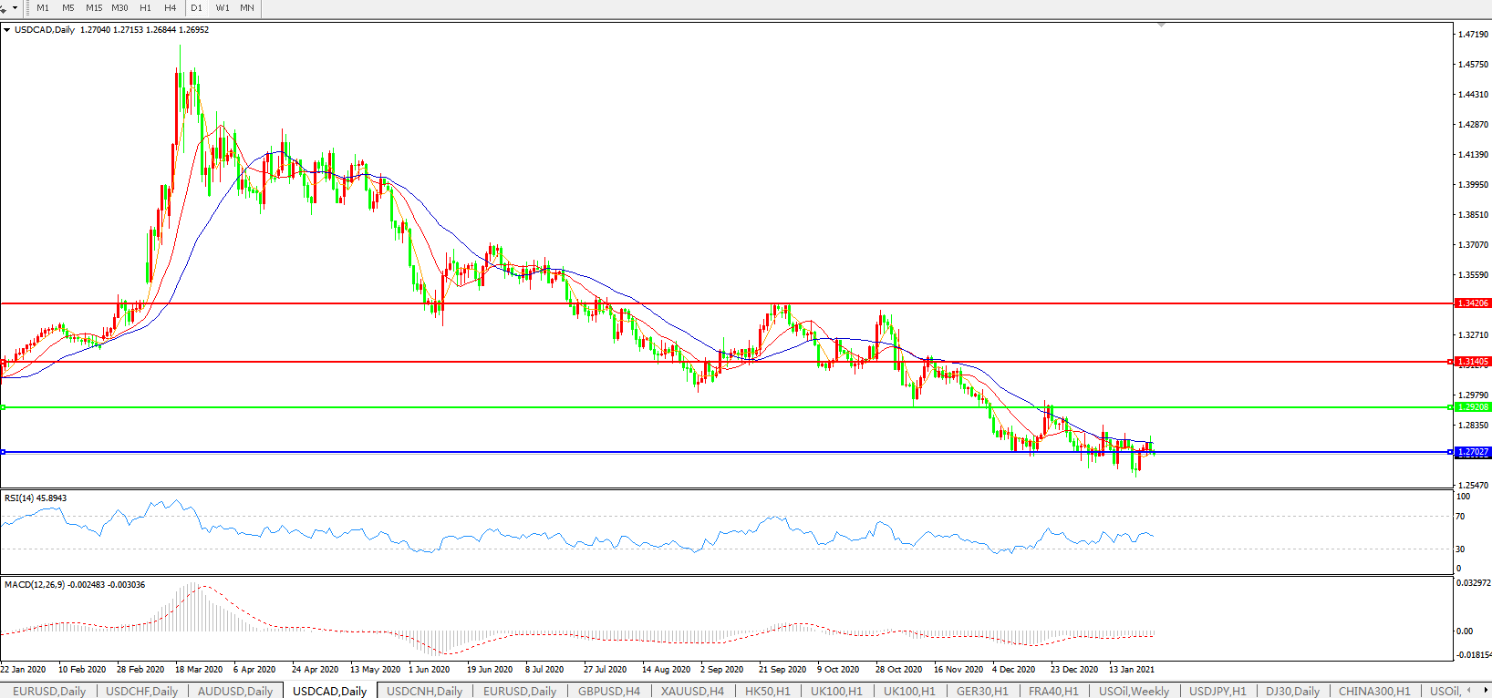 美元兑加元USDCAD    日线图: