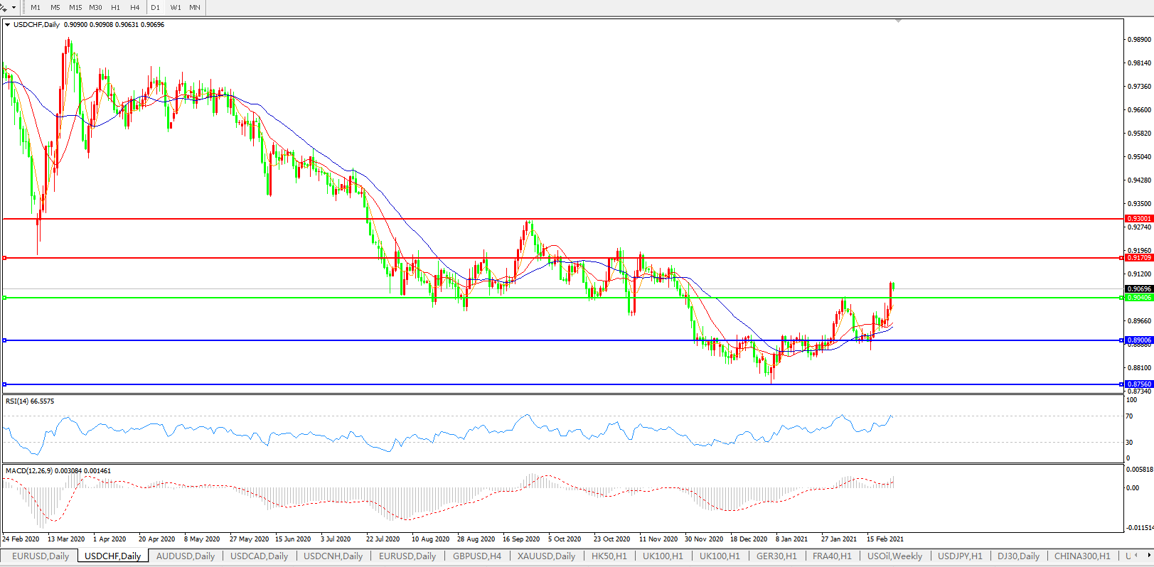 美元兑瑞郎USDCHF    日线图: