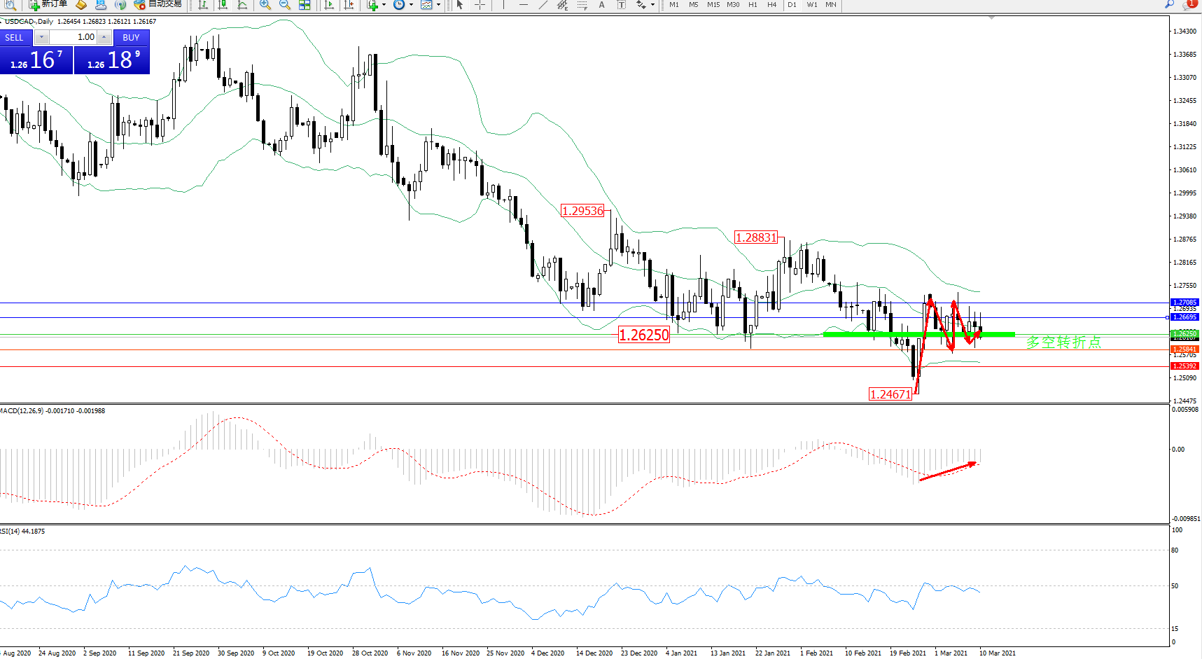 美元加元USDCAD——日K线图显示: