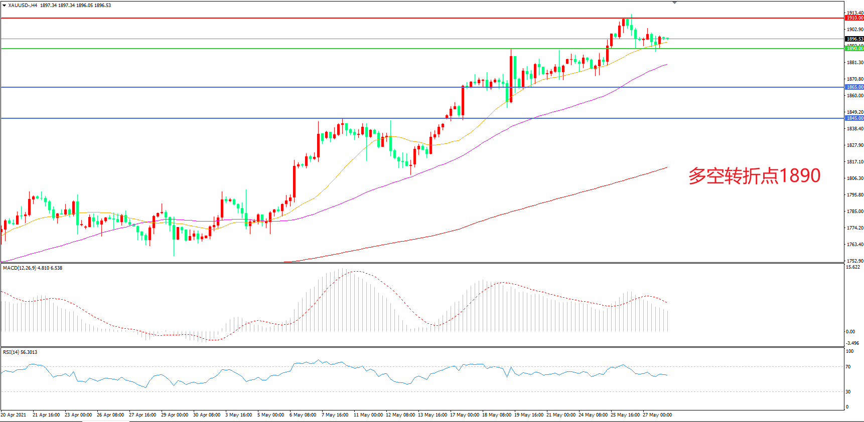 交易策略:在1890.00之上看涨,目标1910.00    1935.00
